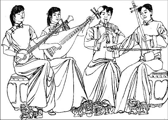 二、南曲的乐队组合有固定的形式,分“上四管”和“下四管”两种。上四管属丝竹乐队、下四管属吹打乐队。