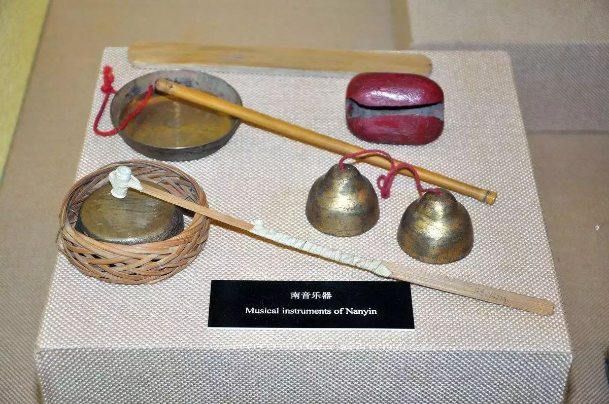 ②下四管乐器有南嗳(中音唢呐)、琵琶、三弦、二弦、响盏、狗叫、铎(木鱼)、四宝、声声(铜铃)、扁鼓,共十种,故又称“十音”。在惠安一带有用云锣、铜钟、小钗和笙等。