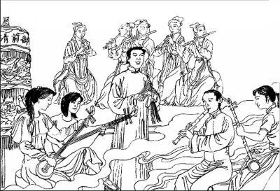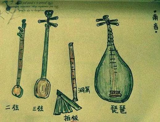 品管——品箫(即笛)、二弦、琵琶、三弦、拍板五种。