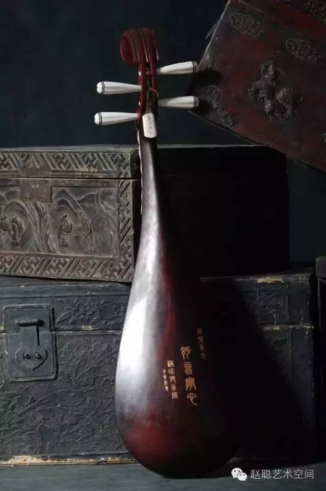 赵聪老师这把南音琵琶出自制琴师王越进之手。 琴头呈凤尾形,曲颈,共鸣箱呈梨状。它的音韵有敲击钟磬之风味。2013年赵聪个人音乐会“指上天下”的开场曲《南音》用的便是此南音琵琶。