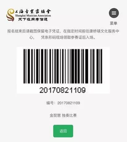 ❺ 报名结束后请截图保留电子凭证,在指定时间前往康桥镇文化服务中心,凭条形码现场领取参赛证后入场。