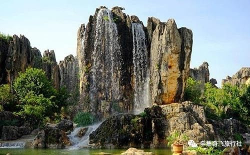 15:30 游览杏林大观园——黑石箐,景区以黑石林为旅游主体,其景观石头各异,千姿百态、山、石、水相映,绿树山花遍地,身临其境,让人流连忘返。,宽30-80米的黑石箐,呈石林状态,石块千奇百怪、婀娜多姿。传说这块小石林是八仙斗法所造。因此林中能找到形态逼真酷似的铁拐石、毛驴石、一指擎天石、花篮石、洞箫石、玉带峰等;又有传说,药师佛阿波多罗密曾在此托梦,指导彝家头人阿古木斯学习医道,济世救人。因此石箐中遍布千种草药,引来鸟语花香,成为古滇国纵横千里少有的“仙境”。