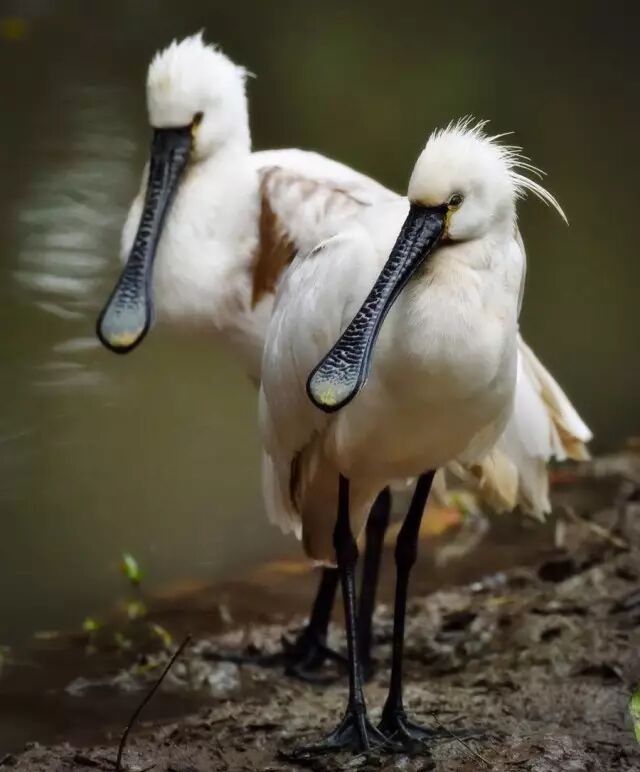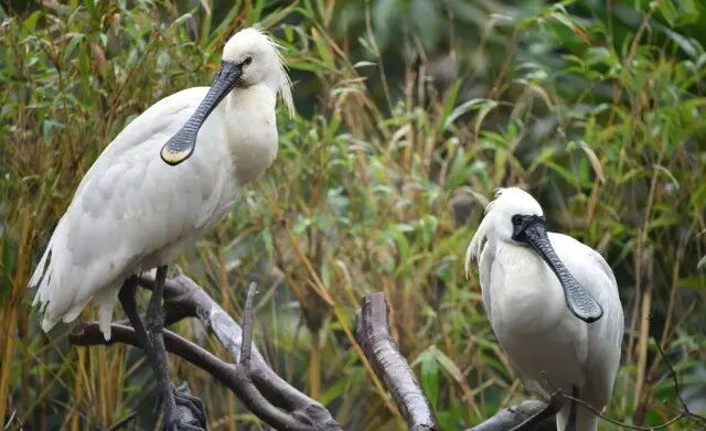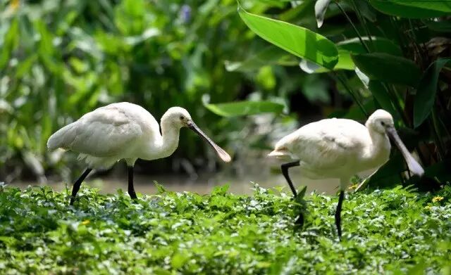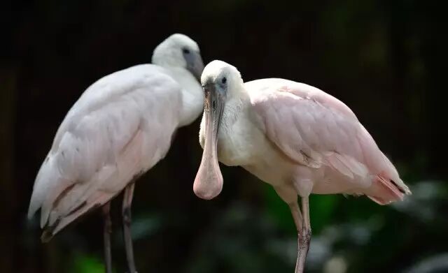 (左白琵鹭,右黑脸琵鹭,摄于长隆飞鸟乐园)