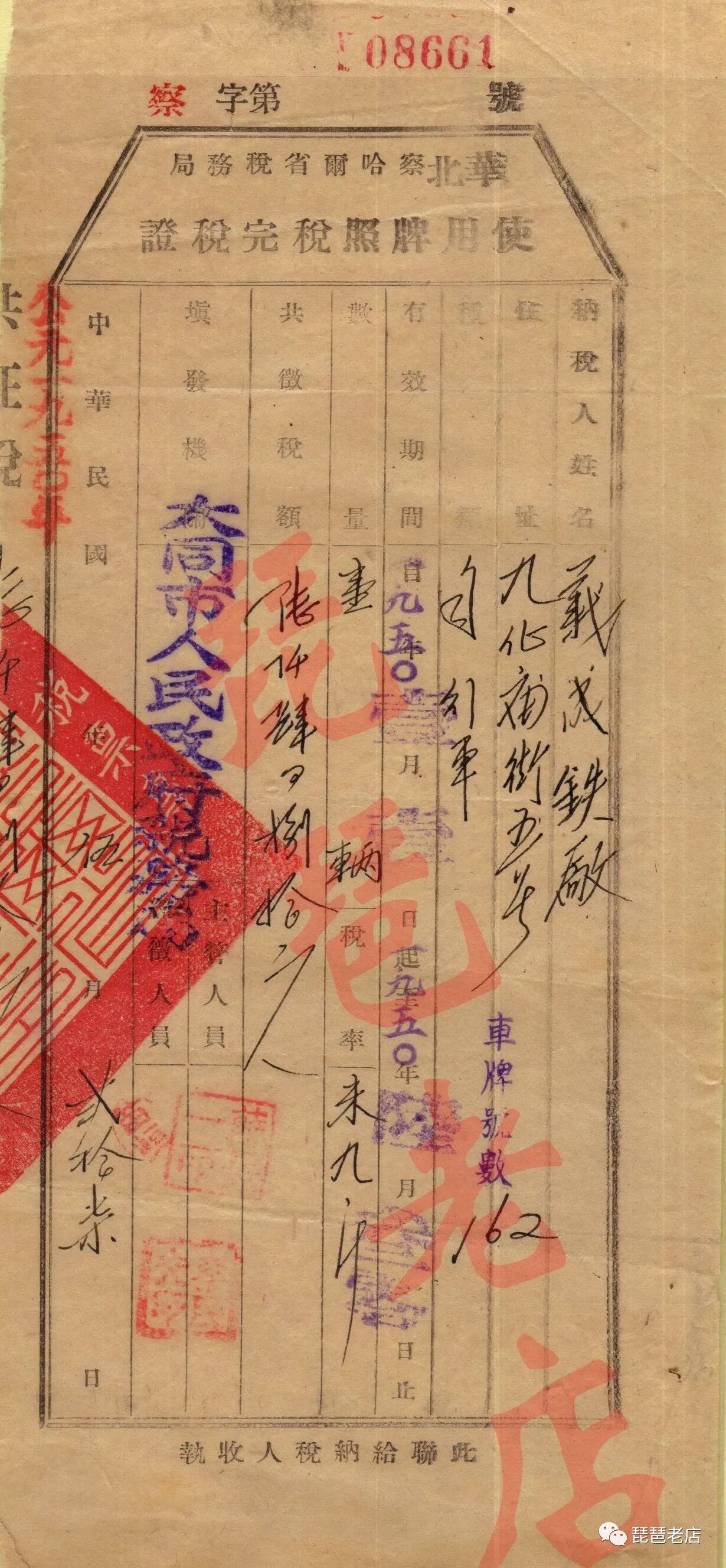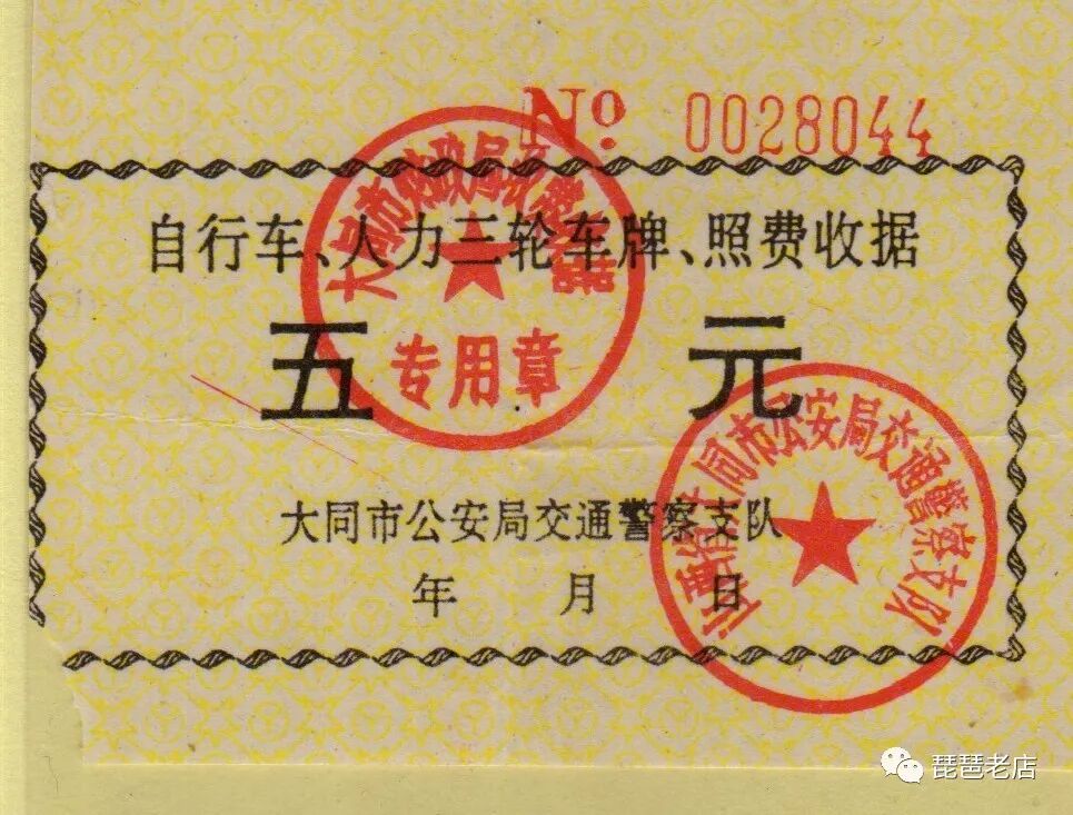 大同和平解放第一年,自行车便纳入政府管理并开始征牌照税,税率为米九斤。