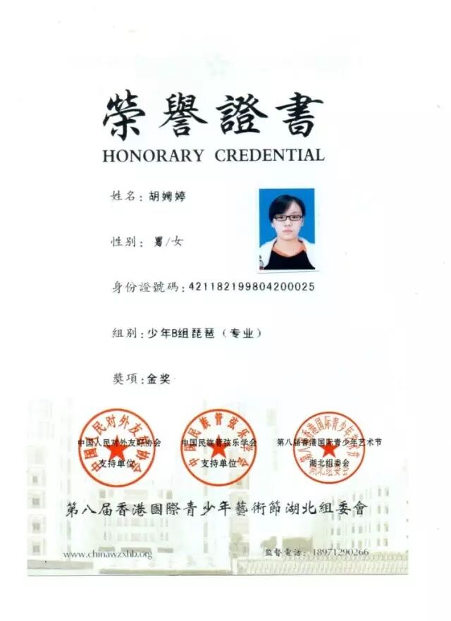 小学时候的胡娉婷演出及比赛获奖时的情景