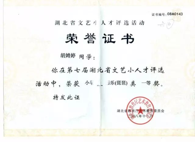 胡娉婷,曾于2003年至2009年在武师附小就读,她才貌双全,聪慧懂事,从小就极具艺术天赋。在武师附小就读期间,一直坚持在琵琶特长训练班学习,经过六年的系统培训,她的琵琶演奏技法得了专业老师的高度认可。小学毕业时,以优异的成绩考入武汉音乐学院附中,在经过刻苦执著的专业训练后,由于个人专业成绩突出,又被中央音乐学院琵琶系录取,仍在就读。在此期间,她多次参加全国各级各类琵琶比赛均获佳绩。