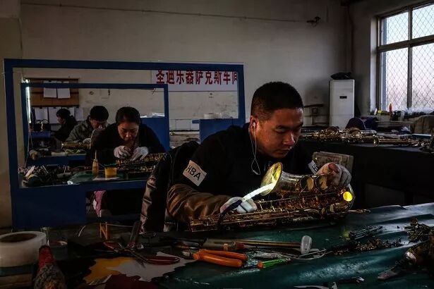 ,这里的70多家工厂每月生产约一万支萨克斯。其中近90%用于出口,主要销往美国,在那里,一支萨克斯的售价在100美元(约650元人民币)以上。
