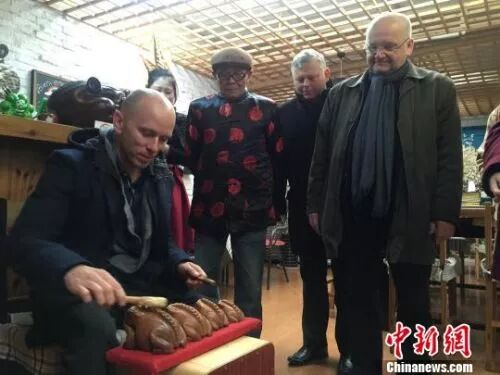 武强县每年都会举办麦田艺术节、吉他文化节等文化活动,年接待游客近百万人次。图为2016年10月28日,波兰的音乐家在当地一家咖啡馆内,击打村民自制的乐器。(图片来自中新网)