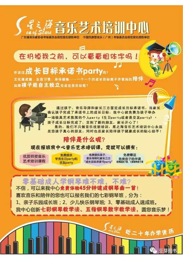 免费提供孩子、音乐导师和家长三方“成长目标承诺书party”;