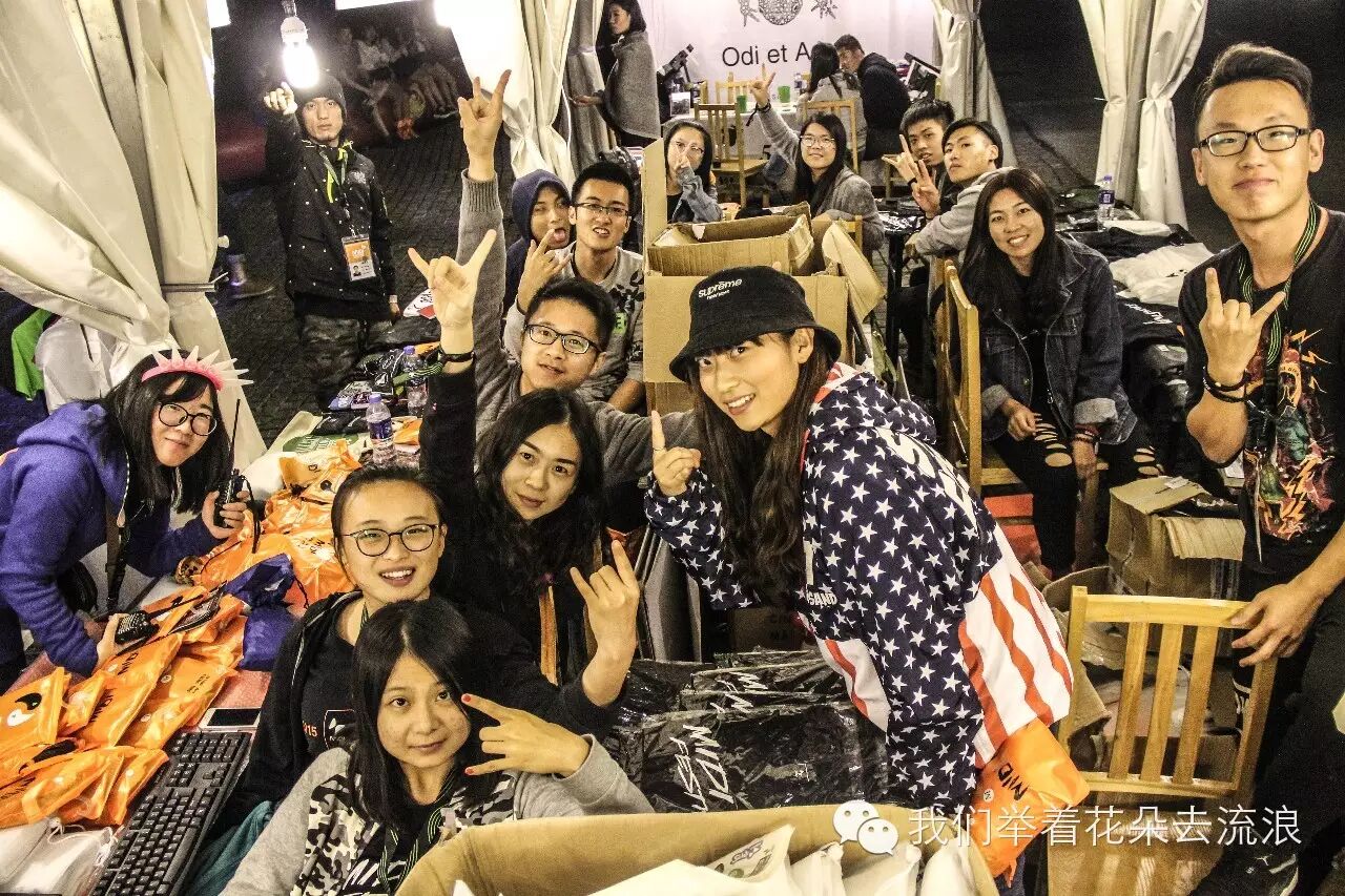 张洁王京:人生有很多第一次,第一次旅行,第一次亲吻爱的人,第一次鼓起勇气面对不敢做的事情。当然,这是我第一次参加迷笛音乐节做志愿者,与迷笛出品组的每个人的相处变成了旅行的起点,我们以分享的方式在工作的时候享受美味,在大家都累到不行的时候相互体谅、安慰,在被“挑衅”的时候同仇敌忾,一致对外,在难舍难分说再见的时候一起举杯含泪告别。而美好却总是可笑在,我们谈笑风生时的一句“我一直都记不得你的名字诶”,从第一天的不熟悉到最后一天我们搂着肩膀唱着让我们红尘作伴活得潇潇洒洒,三天很短,大致只记得卖套人,下次约否?
