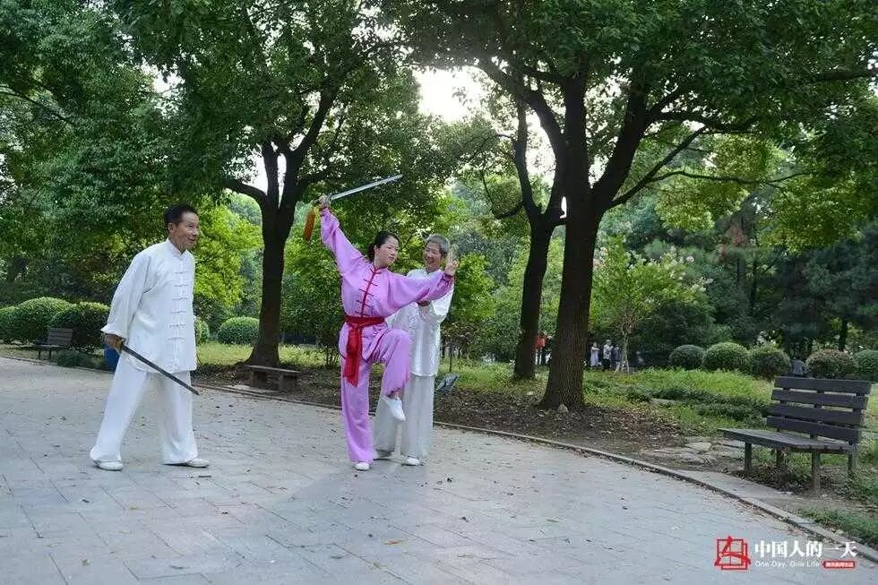 逢寒暑假和节日的早上,父女俩会去公园跟着老师一起练武,他们至今已经坚持了5年多。