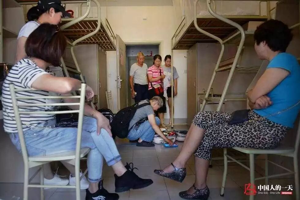 潘世友在宿舍为女儿撑蚊帐,他还细心得特意多带一张床单搭在蚊帐上面,“这样可以挡住落下来的灰尘”。