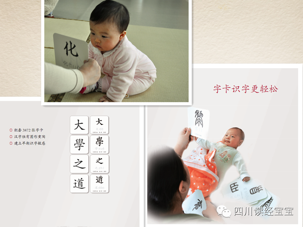 字卡学习:0~6岁的孩子要大循环拿给孩子看,6岁以上的孩子可以每日五十个字,小循环即可。对于已有深刻印象的字卡可减少复习时间。