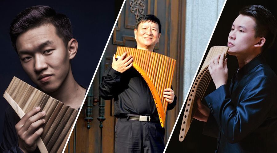 这三位是马云鹤邀请来助演的重奏《啤酒桶波尔卡》嘉宾,第一个被誉为“排箫小王子”张明艺、第二位是代表了“上海排箫艺术研究会”徐治弟,第三位是“中国排箫研究会理事”郑得一男。