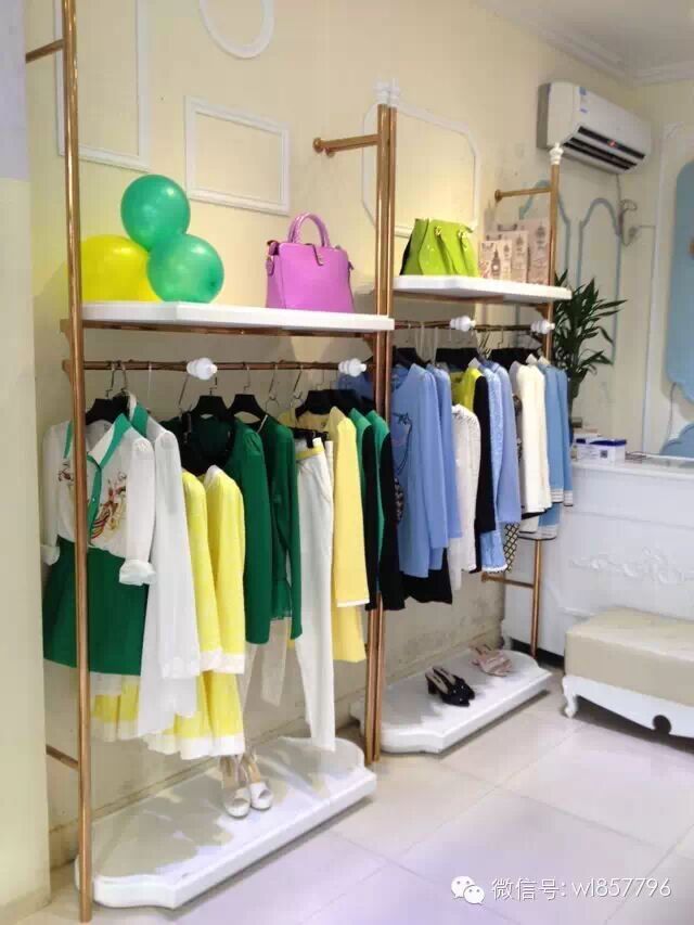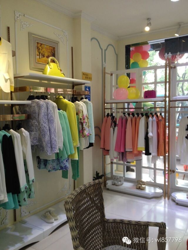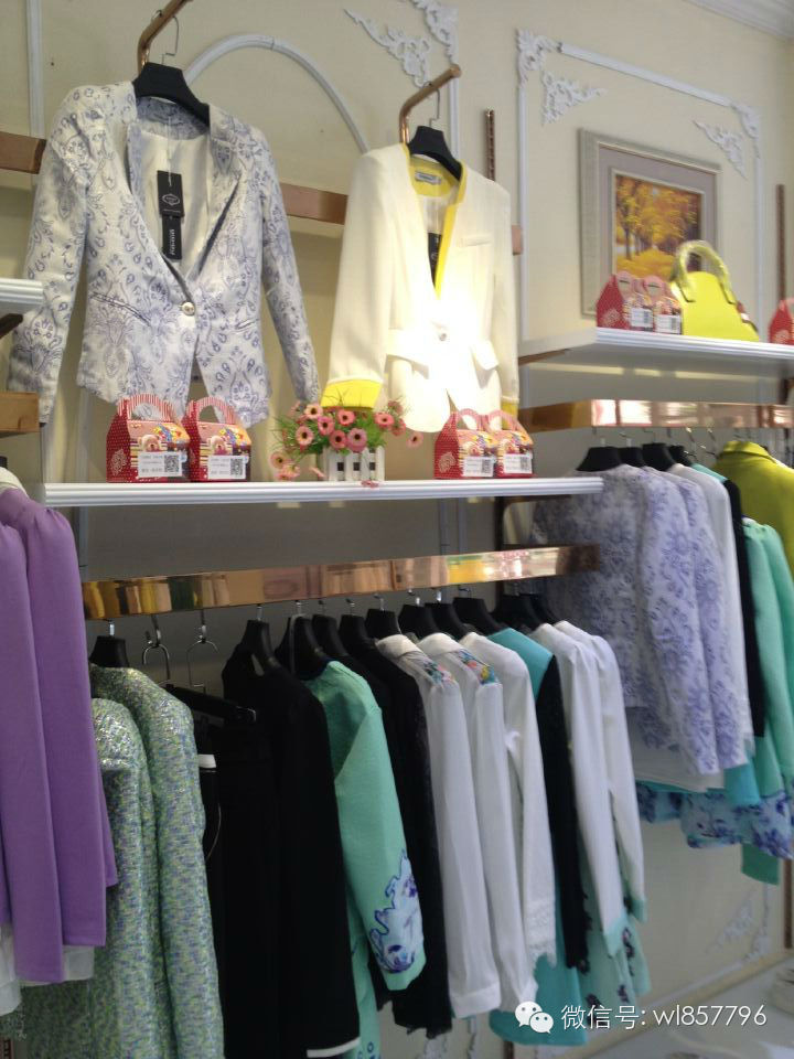 服装陈列有秩,服装的款式多样,色彩丰富,便于顾客挑选。