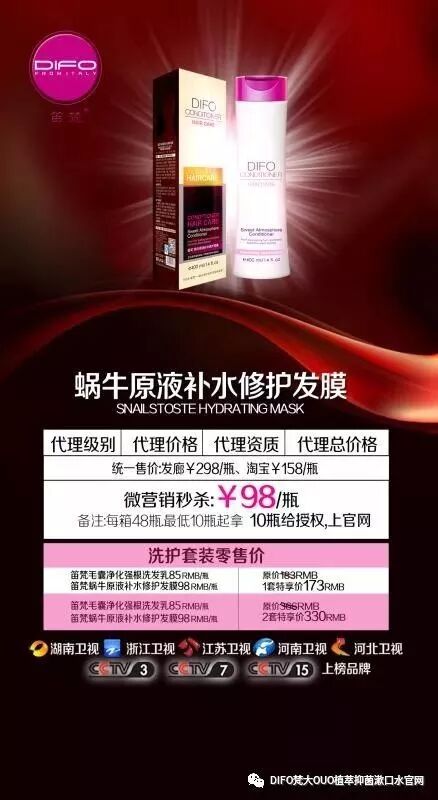 1958·DIFO笛梵,全球16个国家有售,走的都是专业沙龙渠道,上海永琪、北京审美、广东尚艺、深圳卡顿、北京木北、郑州银色、四川A艺、上海京世、南京华仔武汉发源地以及广东八佰伴,这些国内的连锁都有合作笛梵品牌,笛梵品牌里面有洗护造型还有染烫修复蜗牛原液补水发膜,1958·DIFO笛梵奢华洗护配方来自意大利澳姿生物科技有限公司,全球的原料有美国路博润、美国道康夫、德国巴斯夫全球供应,这是化妆品里面全球三大龙头企业。