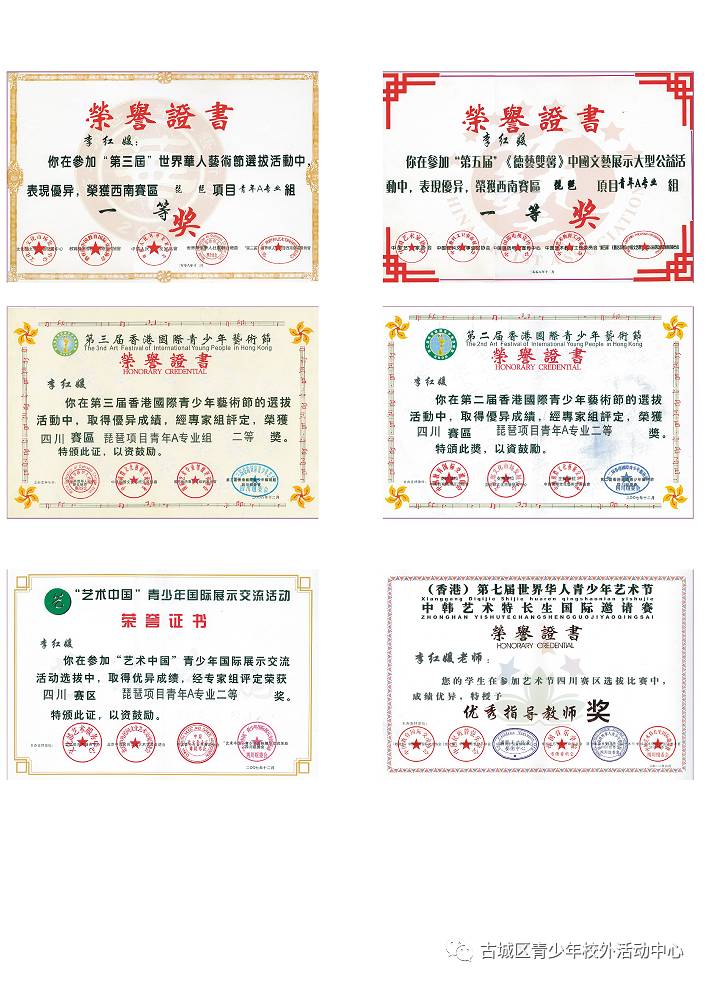 2007年荣获“第二届香港国际青少年艺术节”西南赛区琵琶项目青年A专业组二等奖。
