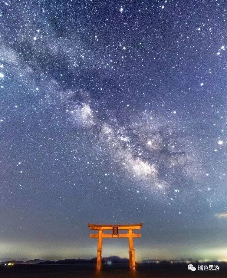 同时,琵琶湖上还有个白须神社。因其悠久的历史先后被认定为日本国指定重要文化财产、登陆有型文化财产、高岛市指定文化财产。水上鸟居是它最大的特色,在日月星辰的照耀下,仿佛是一扇通古至今的门户,让人沉迷。也因此被日本本国人票选为最想去拍照的地方之一。