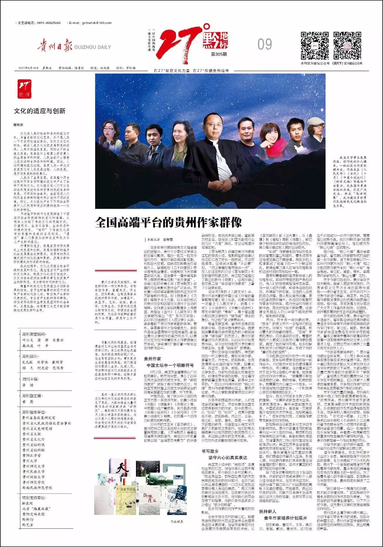 看点:贵州这片土壤孕育出绿水青山,也为创作者们带去丰沛的灵感。在如今的中国文坛,贵州作家正带着鲜明的地域特色,发出响亮声音。由欧阳黔森出任总制片人、总编剧的《二十四道拐》获中国电视金鹰奖、中国电视飞天奖等国家级大奖,还在第十一届中美电影节上荣获优秀电视剧“金天使奖”。今年4月,贵州作家肖江虹从第二届“华语青年作家奖”上捧走小说类主奖;8月,贵州作家冉正万凭借作品《天眼》获得第六届“花城文学奖·新锐作家奖”;7月出版《人民文学》头条,我们看到了贵州作家肖勤的名字。近几年来,更多来自贵州的作家的名字出现在国内大大小小文学奖中,而在《人民文学》《当代》《十月》《上海文学》《山花》等纯文学类杂志上,贵州作家的作品更是屡见不鲜。