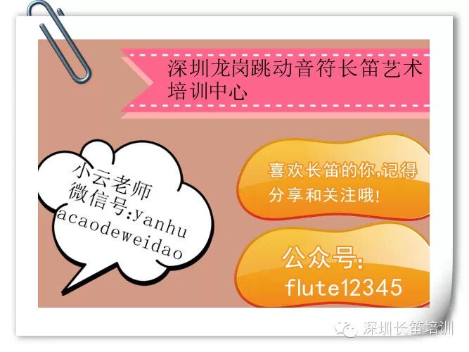 如果没有关注我们,请点击顶部标题下方的蓝色字体“深圳长笛培训”进行关注。