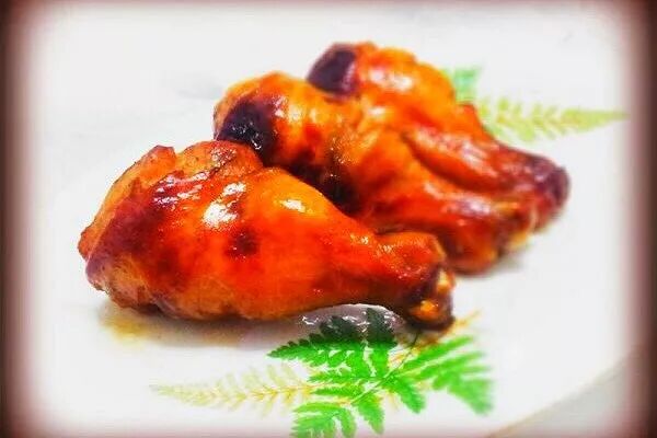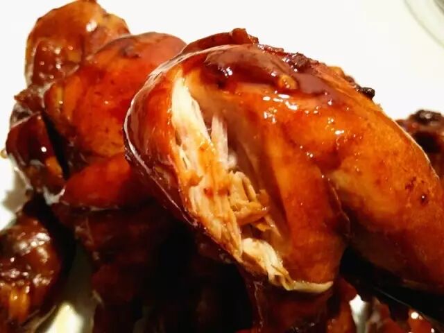 食材:琵琶腿、翅中、葱、姜、盐、蜂蜜、蚝油、味达美、老抽、油;