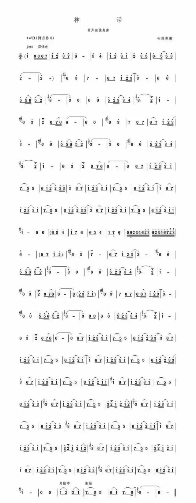 葫芦丝曲谱——神话(葫芦丝独奏曲)