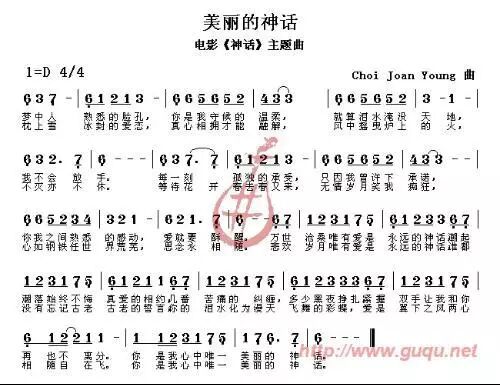 歌曲《美丽的神话》由内地优秀音乐制作人:谢占隽作词,成龙&金喜善/胡歌&白冰演唱,另一版本由孙 楠/韩红 演唱。是电影《神话》和同名电视剧的的主题曲。
