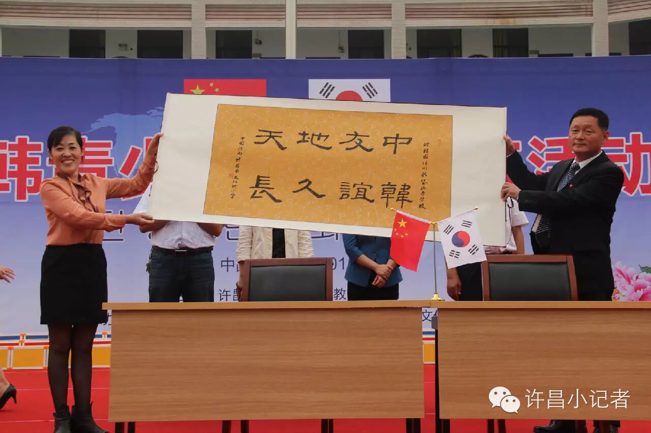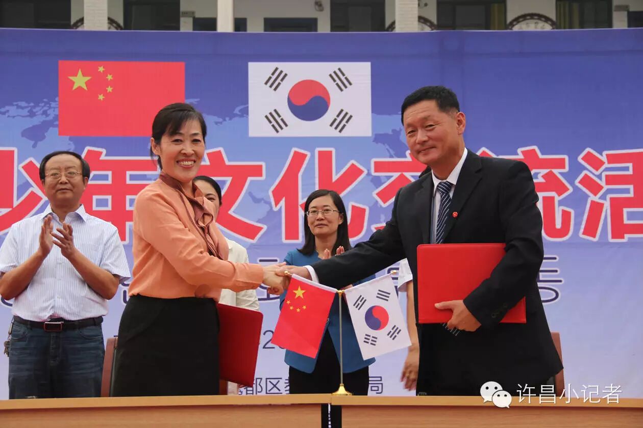 两校签订了友好学校协议,结为友好学校。许昌日报社党委委员、许昌晨报书记徐民府,魏都区人民政府副区长张晓丽,魏都区人民政府办公室副主任李静丽,魏都区教育体育局局长刘建涛,魏都区教育体育局副局长刘中锋,魏都区教育体育局副局长邹小伟,许昌市文化街小学校长李旭和韩国仁川新垈初等学校校监李信东、后援会副会长高金顺、艺术团导演朴金来、江苏文广国际交流中心总经理王建春等参加了友好学校签字仪式,并互赠了纪念品。