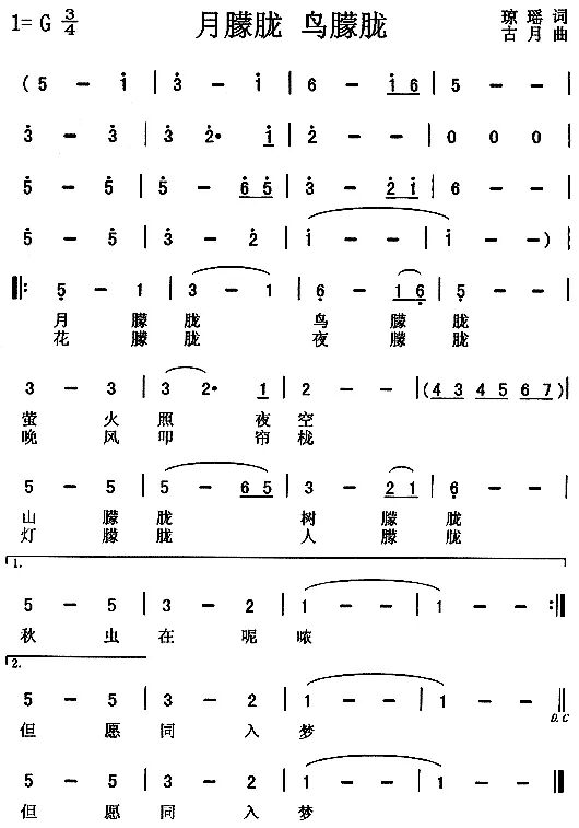 《月朦胧鸟朦胧》创作于1976年下半年,《月朦胧鸟朦胧》原是民初作家朱自清的文章篇名,被琼瑶引用为文艺小说的书名,并在1978年的春节拍成电影轰动上映,由林青霞、秦祥林主演。主题曲是由左宏元作曲,凤飞飞演唱。这一首形似儿歌的小品,简单易唱,却被凤飞飞唱的韵味十足。后被众多歌星翻唱并被多种音乐形式表现。