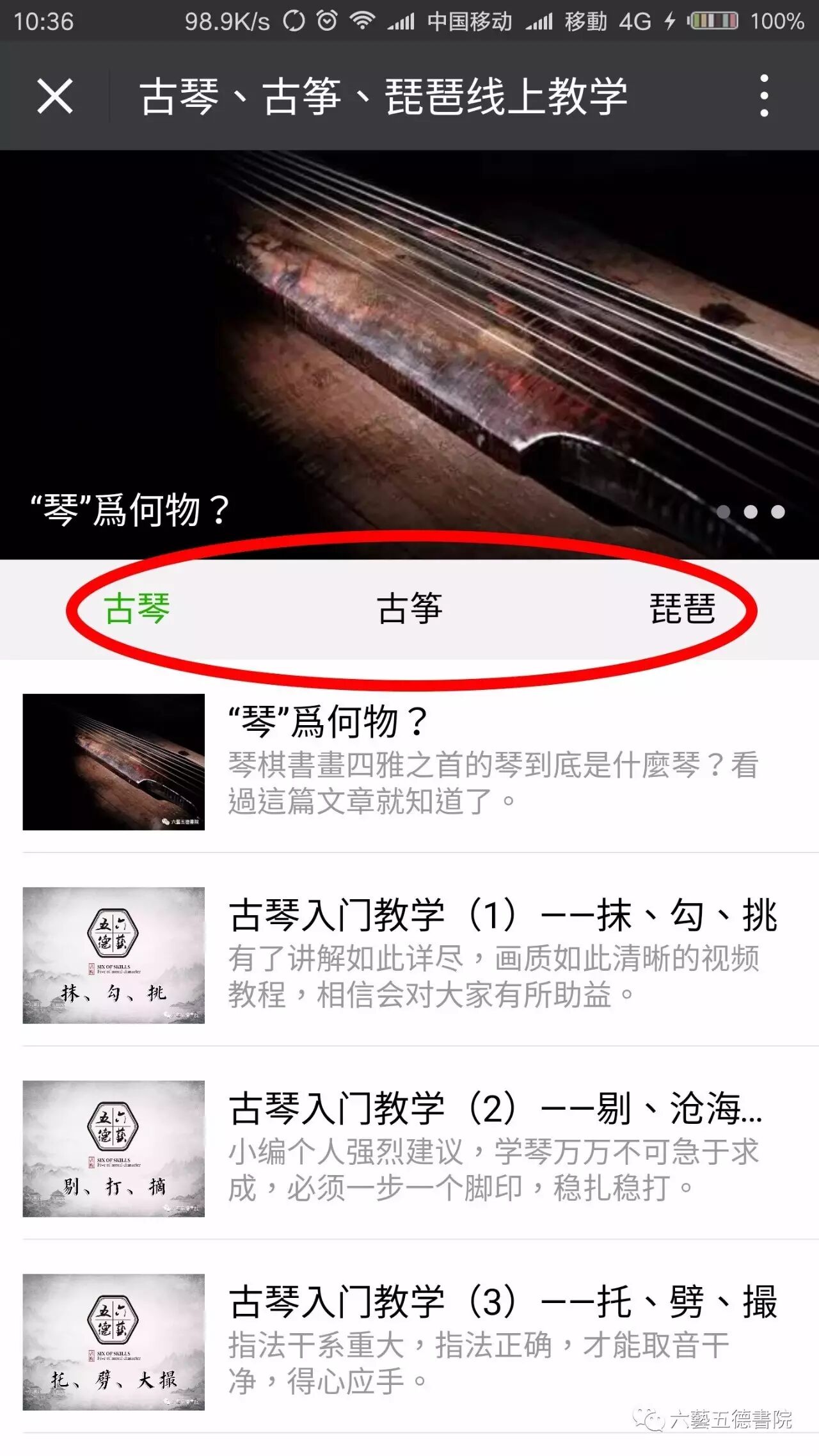 为了方便各位朋友学习,也为了感谢长久以来大家对六艺五德书院的支持,利用公众号作为线上平台,我们建立起了六艺五德书院的线上公益课堂。通过线上课堂,您可以随时随地开始学习自己喜欢的课程。六艺五德书院的常规课程(古琴、古筝、琵琶、书法、国画、围棋、象棋、武术、跆拳道、太极拳)均已开通线上公益课堂,且正在不断更新中。