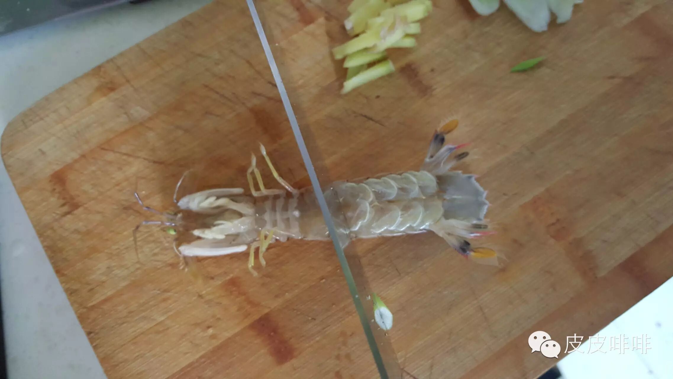 将洗净的虾爬子拦腰切断(这个步骤实在有些残忍残忍啊!!!)