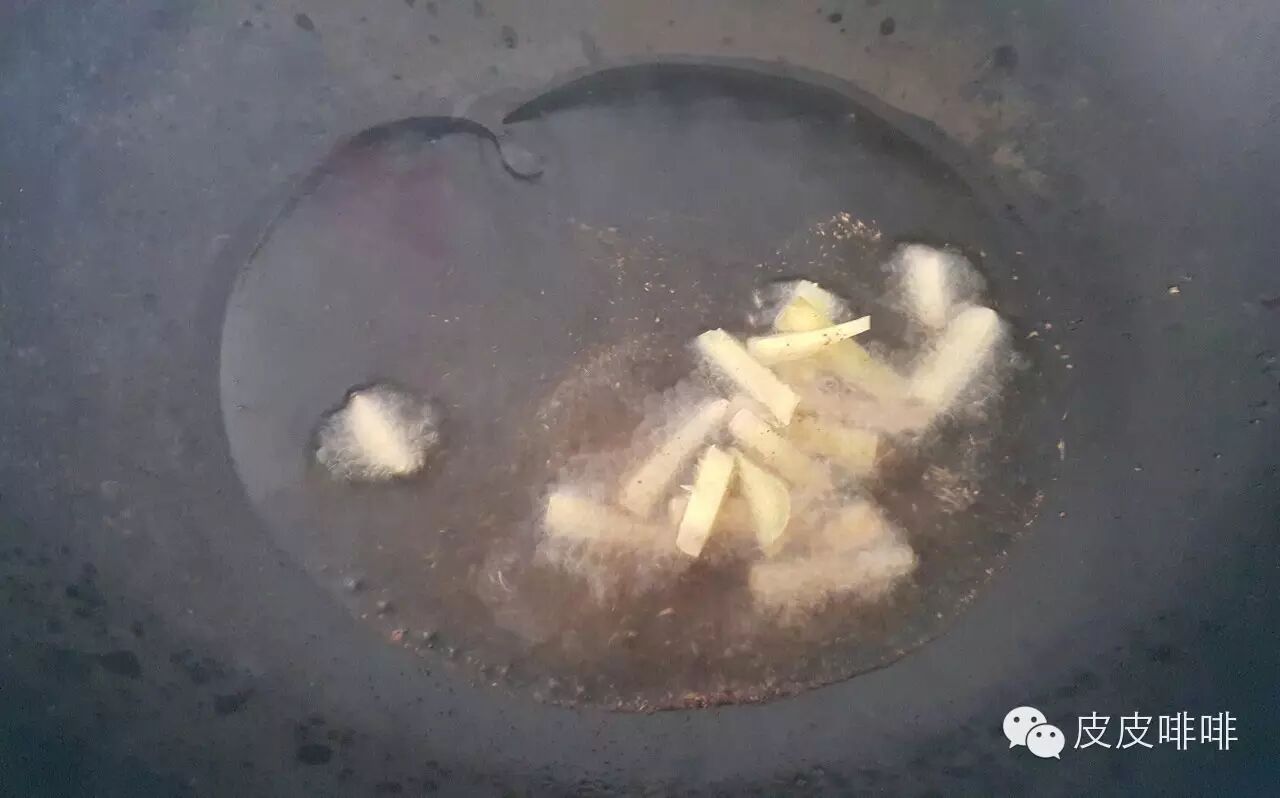 再放入姜丝或小块儿,煸炒出香味儿。