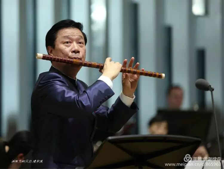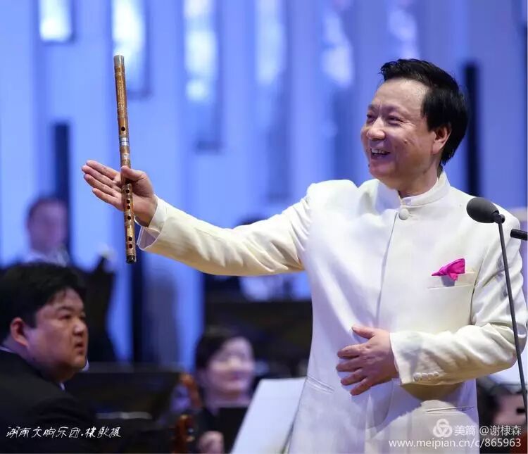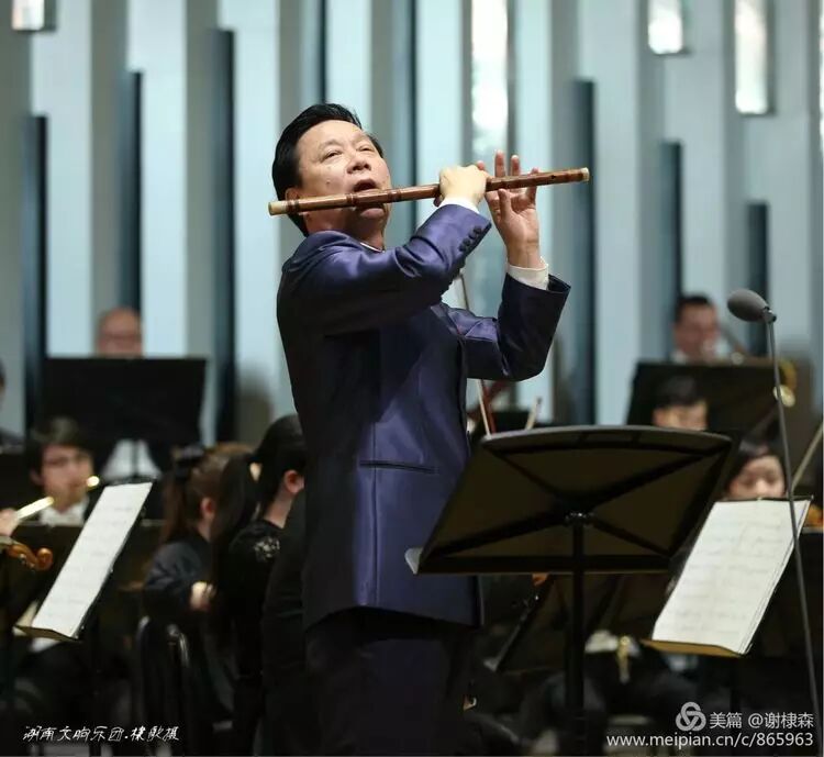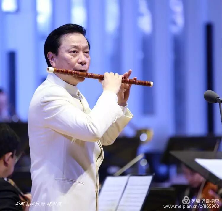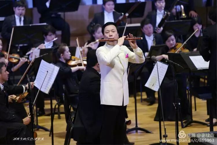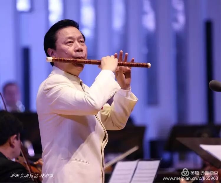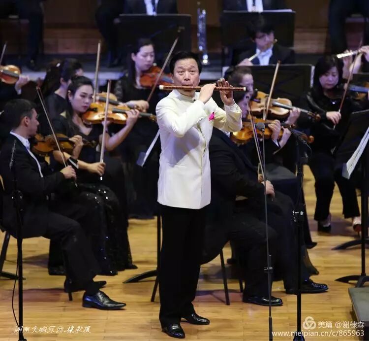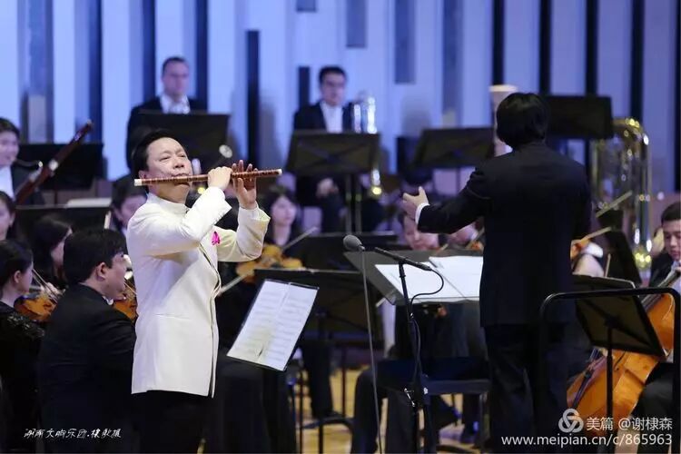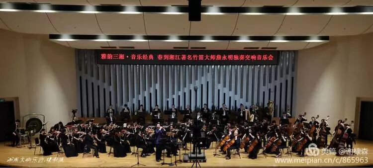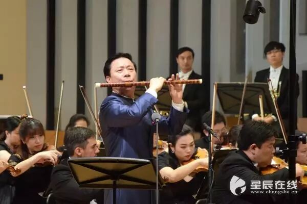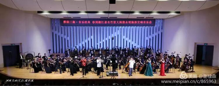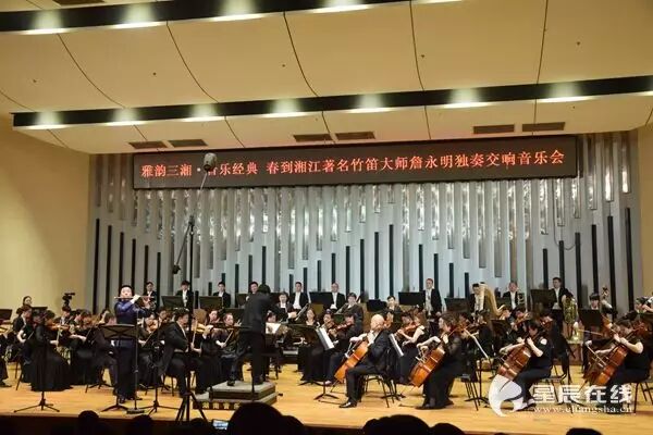 (《春到湘江》著名竹笛大师詹永明独奏交响音乐会在湖南音乐厅上演。)