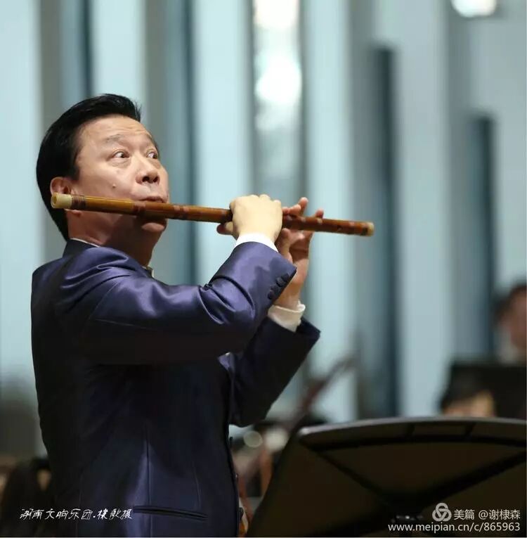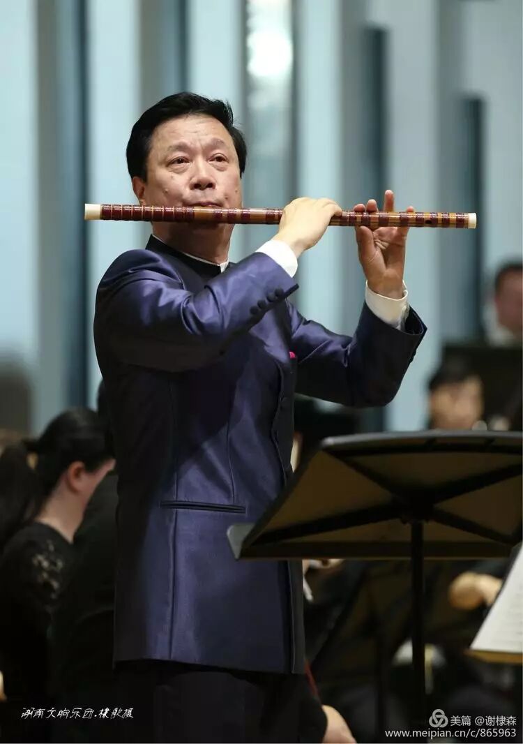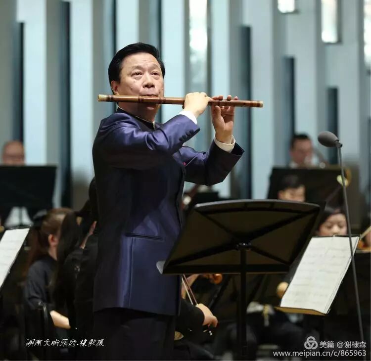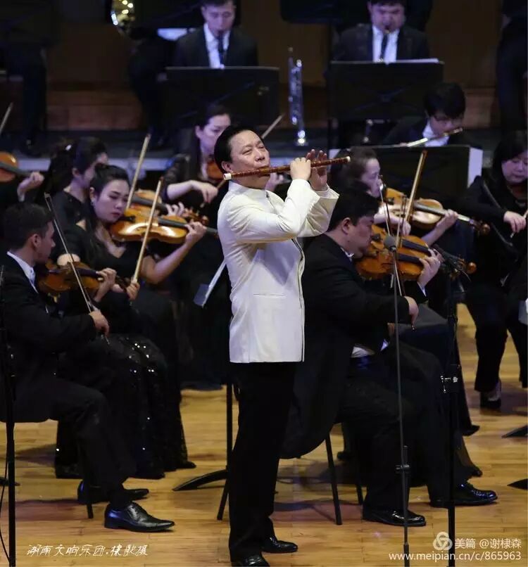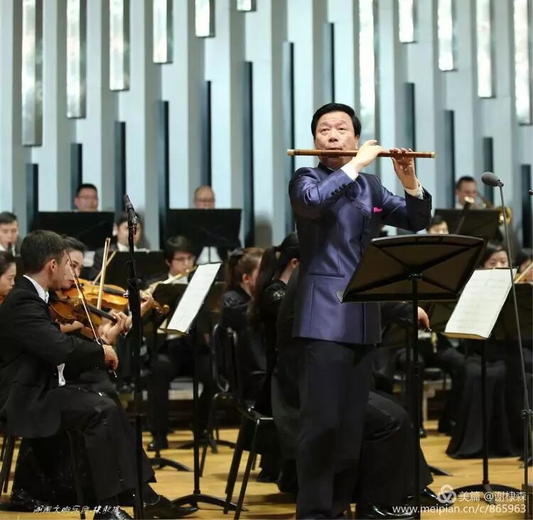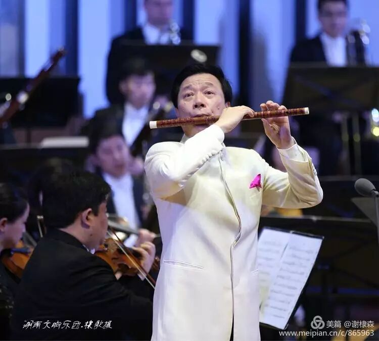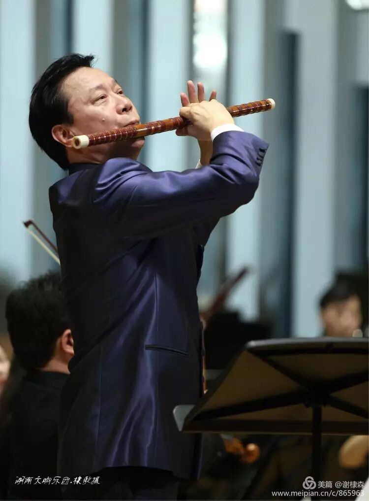 (《春到湘江》著名竹笛大师詹永明独奏交响音乐会在湖南音乐厅上演。)