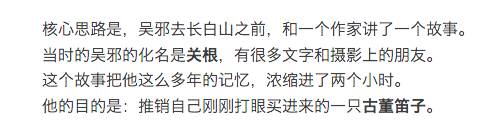 怎么个忽悠法?三叔自己说,吴邪讲这个故事,就是想要推销一下自己的古董笛子。