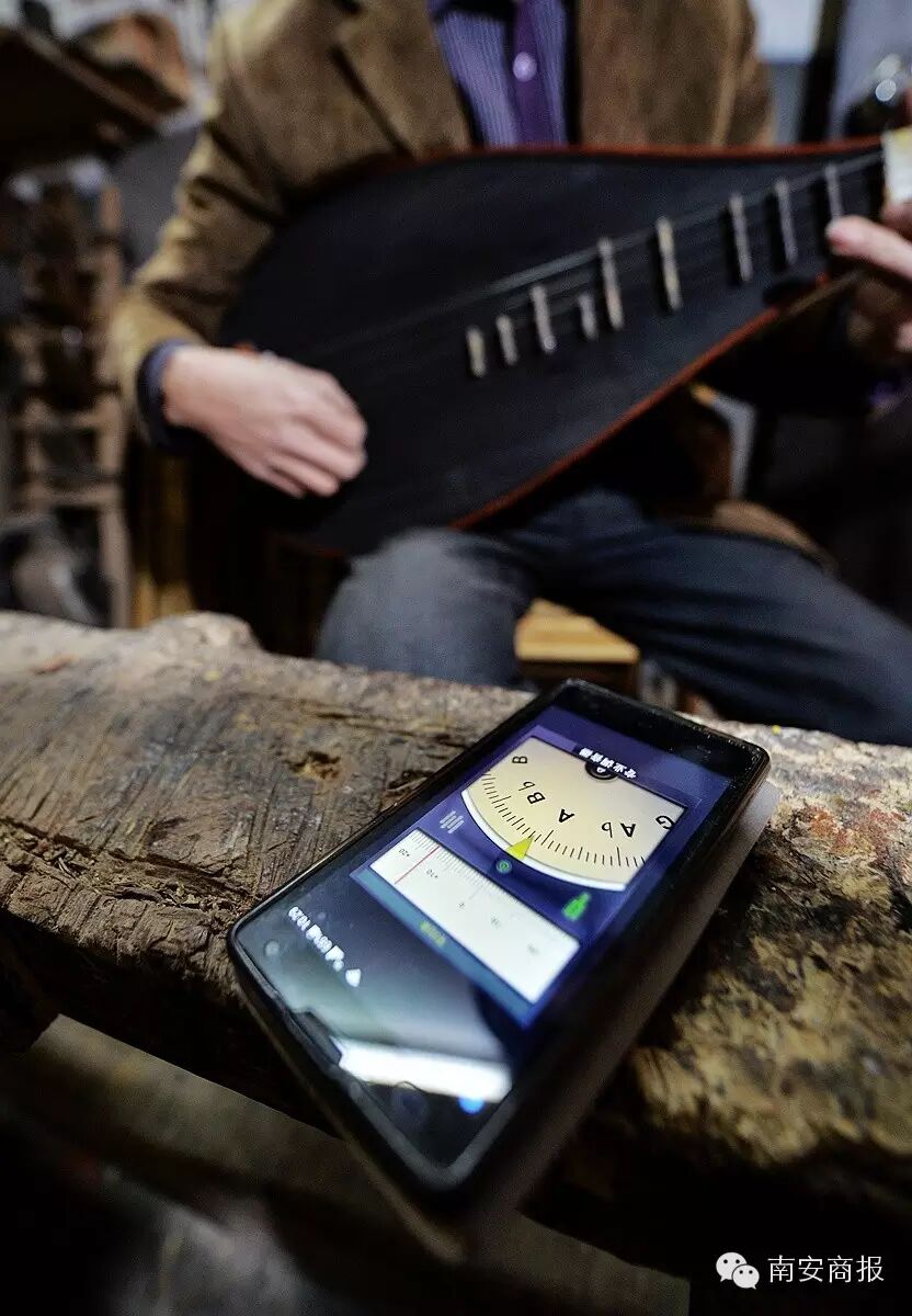 琵琶初步制作完后,黄小龙要对它进行调音,如今,电子调音器已经非常普遍,一个手机App就可以做到