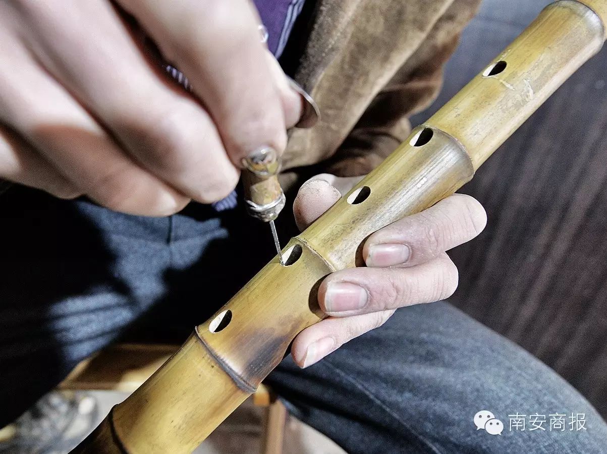 在洞箫的制作中,除了要根据手指长短确定开孔位置外,还要根据校音,调整孔的大小及形状