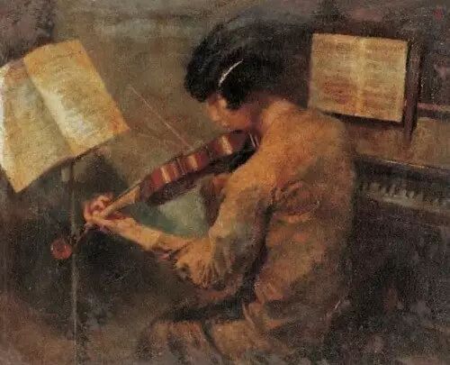 不管怎样,在观《箫声》这幅画时,我们似乎真的感受到了一片美好的景致和一份真挚的情感,从竹箫声中流淌出来。这是现实主义手法在表现人物具有的特色,真实而生动,富有感染力。这也是艺术带给我们精神上的愉悦和审美上的享受。