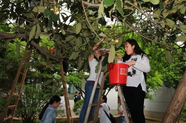 下午4点半,下课铃声一响,学校总务处的师傅扛着长梯,架在枇杷树下,同学们带上手套,在老师的保护下攀上梯子,尽情体验采摘乐,还有不少同学边摘边吃,欢乐极了。
