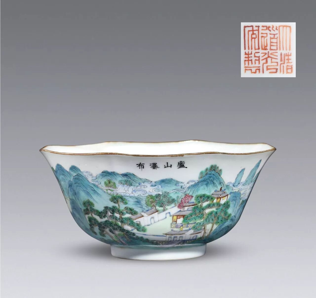 清道光 粉彩江西十景之庐山瀑布碗
