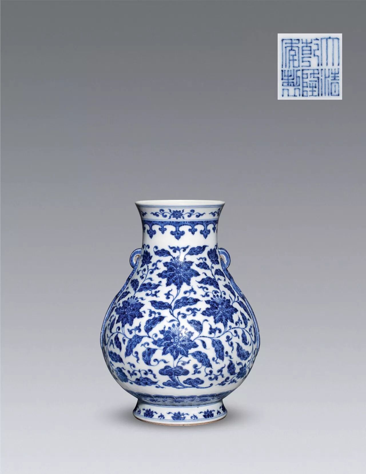 清乾隆 青花缠枝萱草纹绶带耳琵琶尊