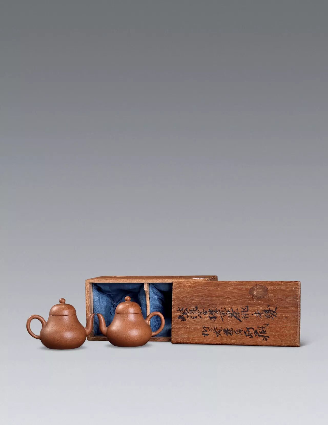 清 孟臣铭锻泥梨型壶一对