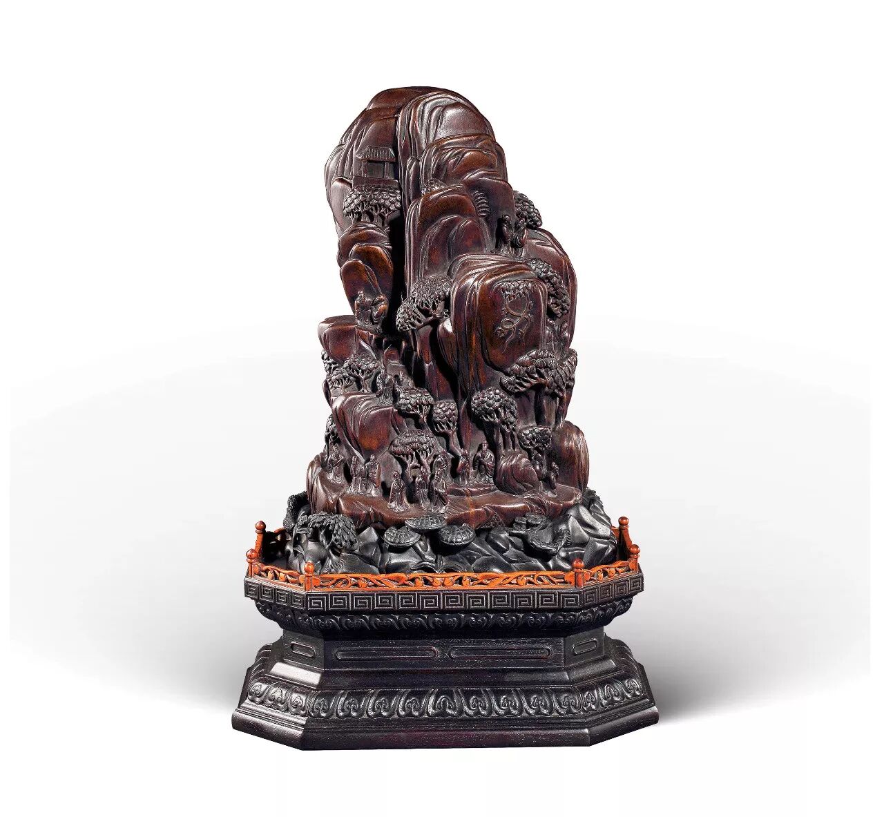 清 沉香雕大型山水人物摆件
