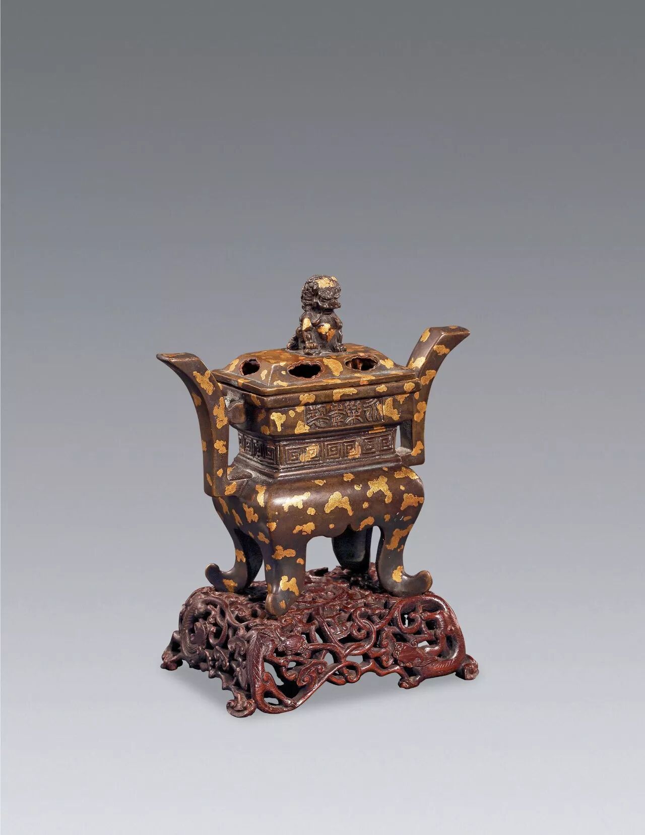 明末清初 铜贴金朝板耳香炉