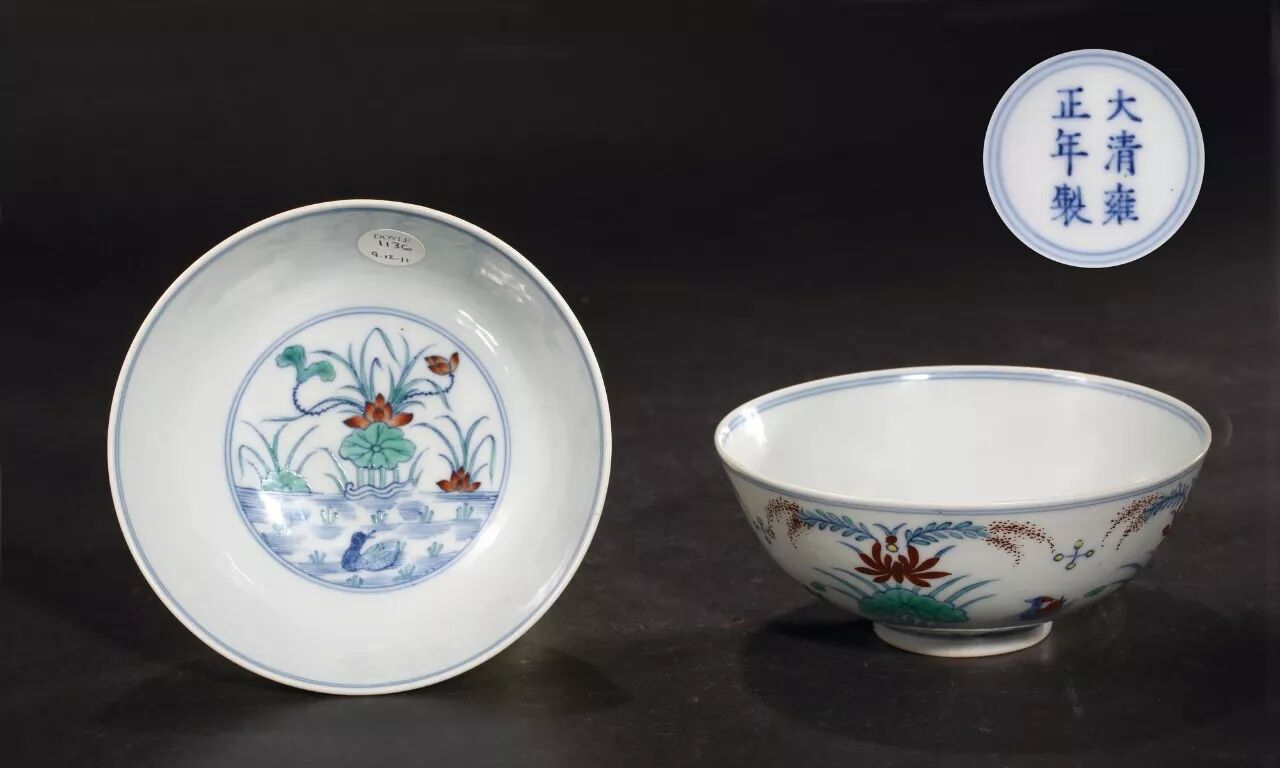 清雍正 斗彩荷花鸳鸯碗一对
