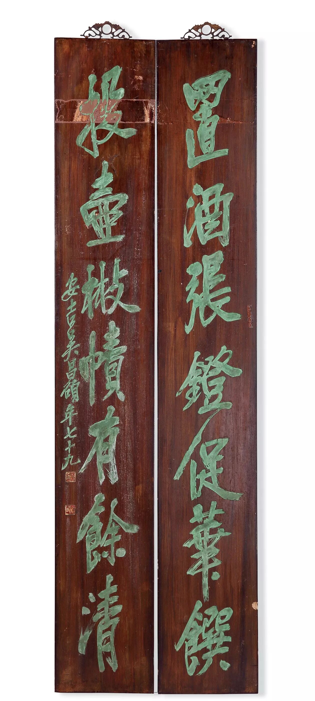 清 楠木刻吴昌硕书法对联一对