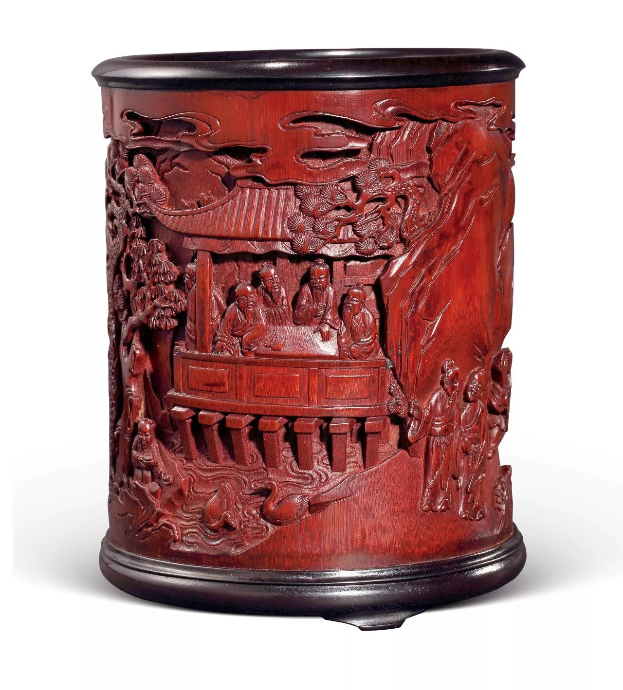 清早期 竹雕兰亭雅集笔筒