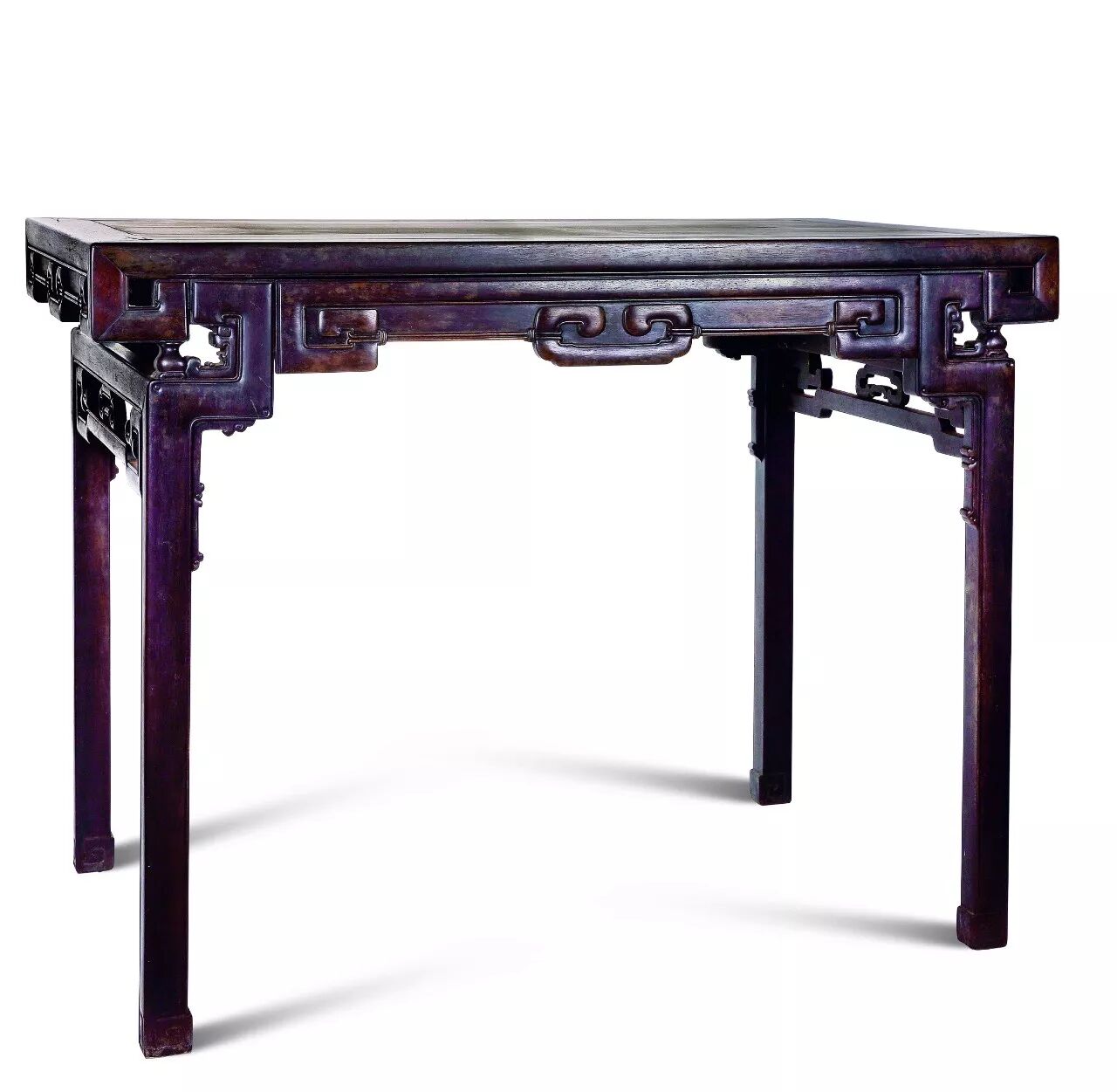 清乾隆 紫檀雕拐子龙纹镶嵌云石面画案