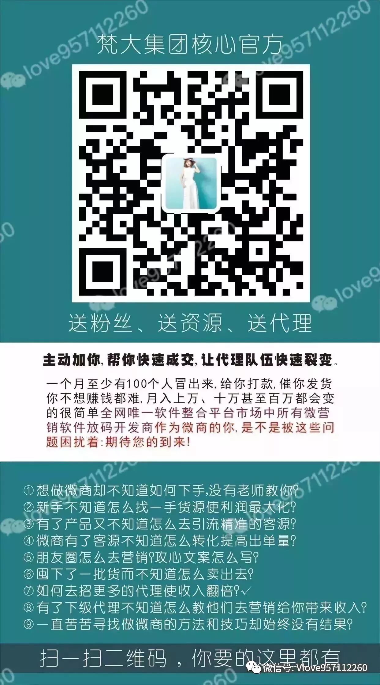 想做微商的伙伴可以联系我!找好上家很重要,咱们不是简单的供货卖货关系,我会教你怎样销售、调整心态、管理团队,定期开展微信营销初级、中级、高级课,护肤课,帮助你迅速成长!