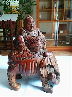 曹国舅,宋人,宋仁宗曹皇后之弟,是八仙中出现最晚的一位。在道教八仙中世俗地位最尊贵,尽管位高国舅,且天资聪明,但他并不愿享受荣华富贵的特权阶级生活,而偏爱道教修行。在八仙形象中,曹国舅不是通常的道士打扮,仍着官服,系玉带,持玉板。在民间,他时常执檀香云阳板,为人们的婚丧喜庆,敲得喜气洋洋,云散日出。